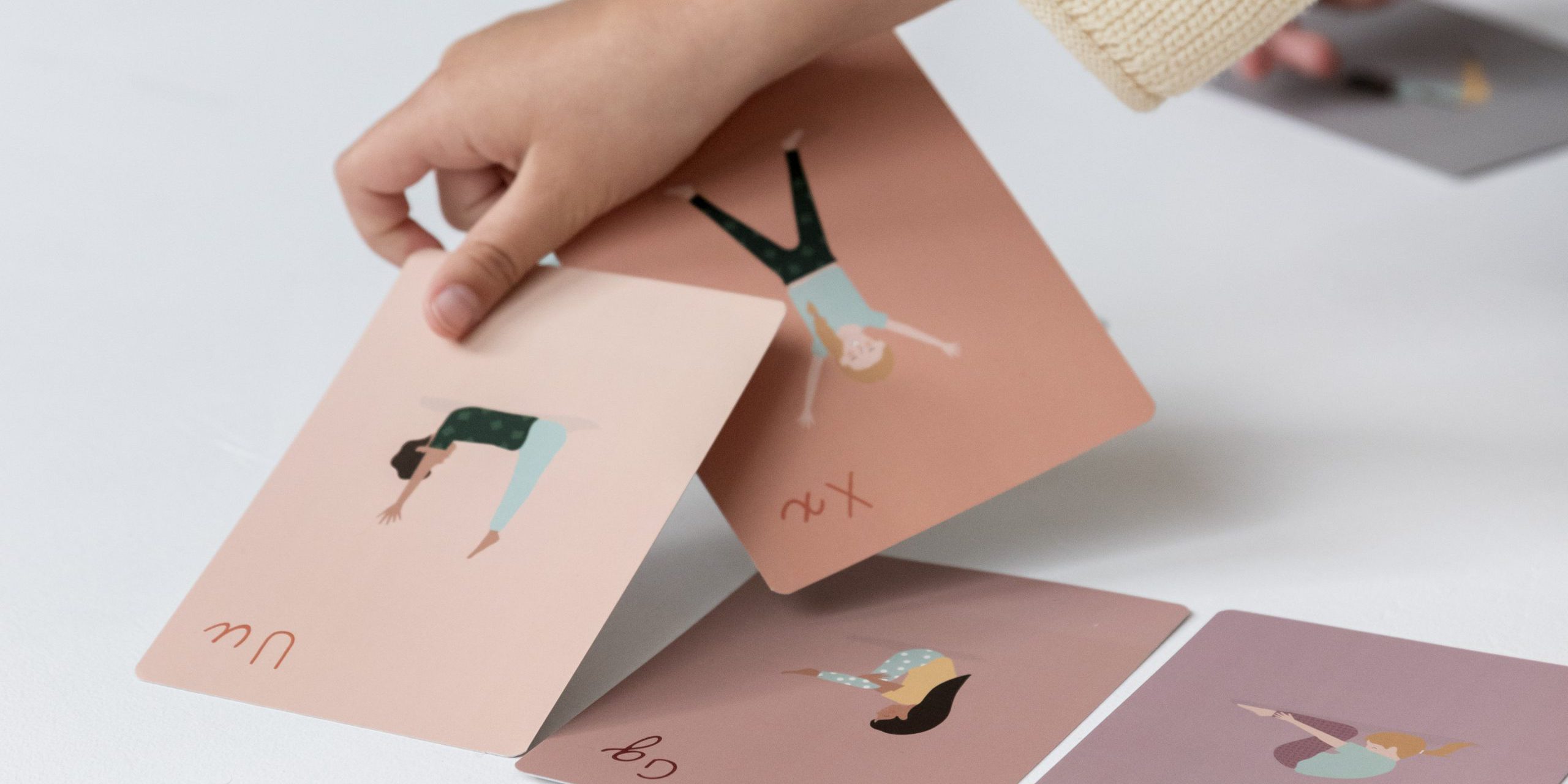 Het gloednieuwe beweegspel Yogaletters is spelen, leren en bewegen inéén. De basis is een set van 52 letterkaarten en een spelboek, boordevol inspiratie en speeltips. Kinderen leren spelenderwijs het alfabet, door met hun lichaam letters te vormen. Ze kunnen hun naam uitbeelden met Yoga-je-naam of hun hersens laten kraken met Memory.