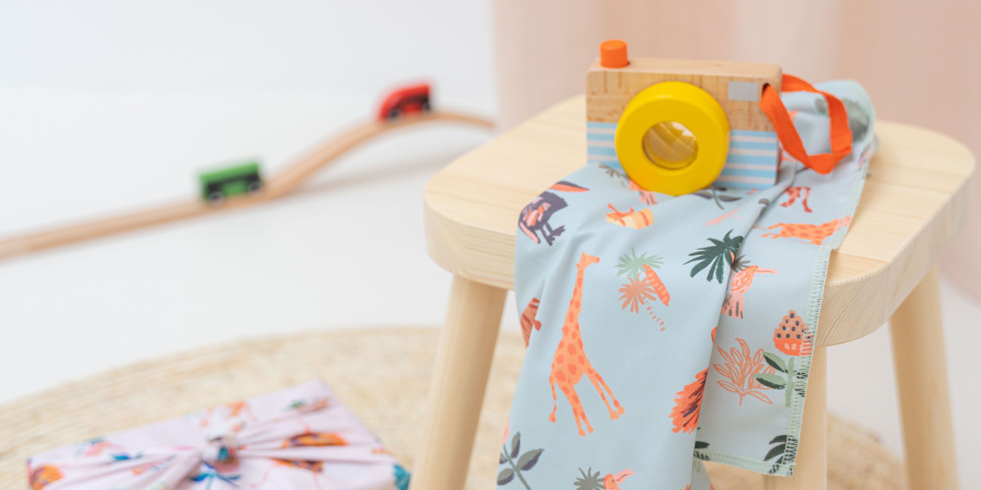 De nieuwe inpakdoeken van La La Fete komen in frisse kleuren met daarop een super toffe safari-print van geschetste dieren en palmbomen. Het geven en krijgen van een cadeau is zo extra feestelijk. Elke doek is handgemaakt, uniek en kan gewassen worden op 30 graden: handig als er met taart of limonade overheen geknoeid wordt. Frisgewassen? Hup in de kast, klaar voor het volgende feest.